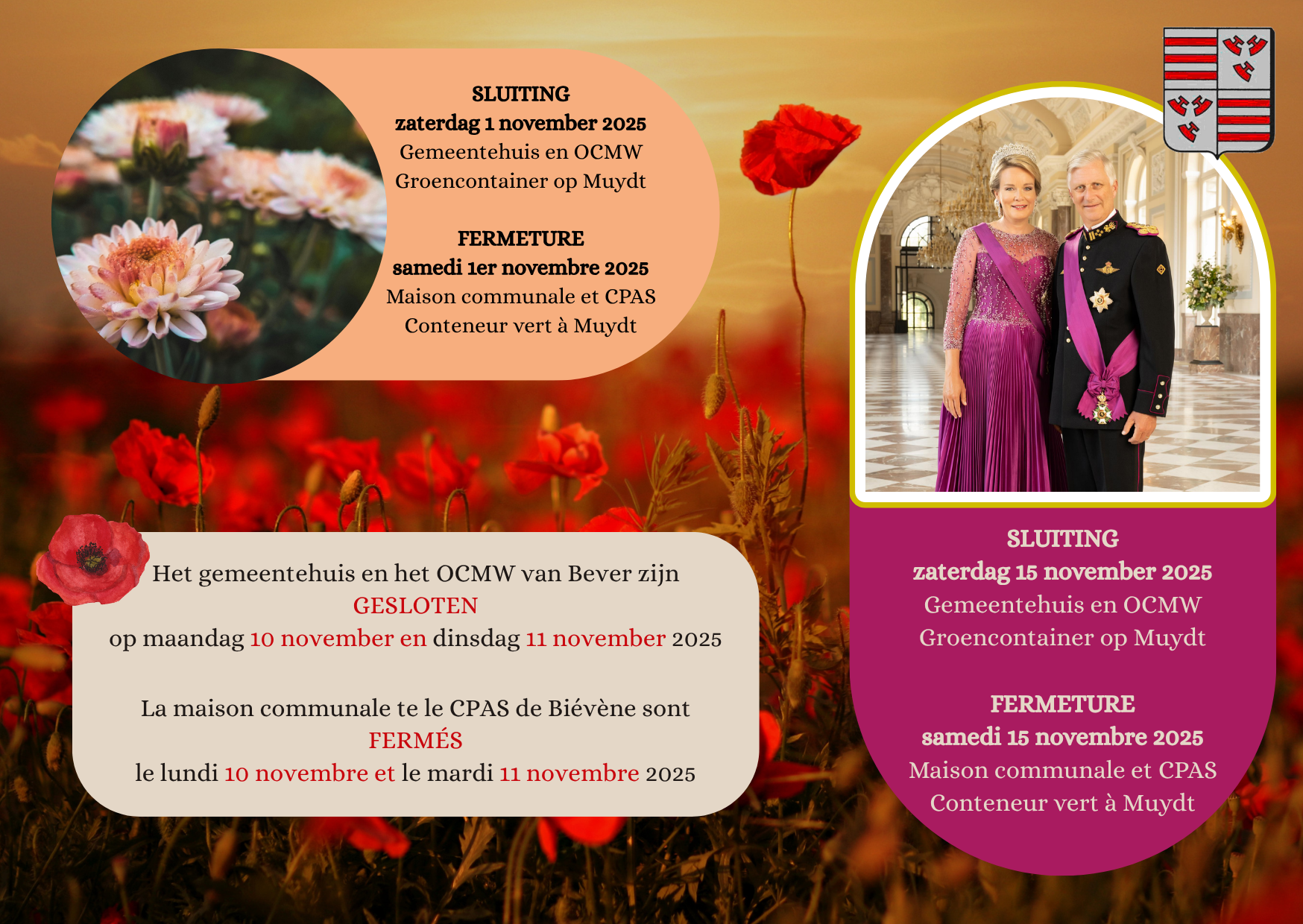 Jours de fermeture en novembre - publication 27 octobreJours de fermeture en novembre 2025DelenTweetE-mail